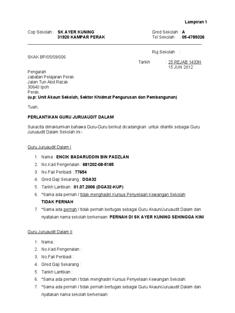 Contoh Surat Lantikan Akauntan